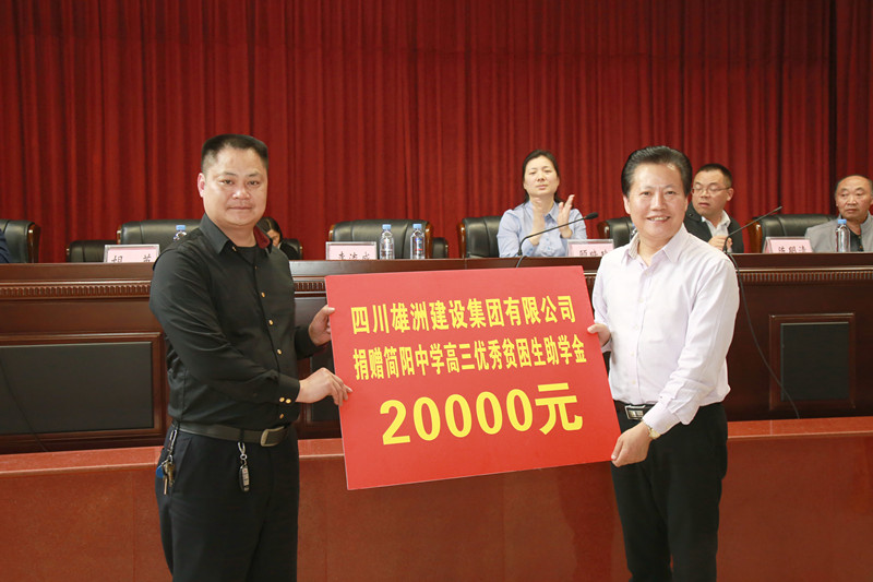 【概要描述】2017年雄洲集團(tuán)董事長李方明同志捐贈、慰問貧困學(xué)子2018年四川雄洲建設(shè)集團(tuán)有限公司幫扶共建為高考加油·為夢想助力2018年3月15日,簡陽市工商聯(lián)(商會)組織開展了以“為高考加油·為夢想助力”為主題的“愛心企業(yè)簡中行”、“愛心企業(yè)陽安行”公益活動,共資助110名高三優(yōu)秀貧困生,捐資共計11萬元。市委常委、統(tǒng)戰(zhàn)部部長,市總工會主席顧曉玲,市政協(xié)副主席、市工商聯(lián)主席、市商會會長陳明清出席活動。四川誠卓房地產(chǎn)有限公司、四川雄洲建設(shè)集團(tuán)有限公司、四川簡陽銀河房地產(chǎn)開發(fā)有限公司、四川帝王潔具股份有限公司參與了此次活動。市商會副會長、四川雄洲建設(shè)集團(tuán)有限公司總經(jīng)理李流成代表捐助企業(yè)發(fā)言。他表示,企業(yè)在發(fā)展過程中都得到了市委、市政府以及社會各界的關(guān)心和支持,企業(yè)也一直以積極的行動回饋社會。以后將積極倡導(dǎo)有更多的工商界和社會各界人士投身到各項社會公益事業(yè)中來,以感恩的心回饋社會,譜寫出實現(xiàn)共同富裕的華彩樂章。陳明清主席介紹了活動背景,對參與愛心助學(xué)的企業(yè)表達(dá)了誠摯的謝意,并勉勵同學(xué)們要以大無畏的勇氣接受高考這場挑戰(zhàn),攻堅克難,以優(yōu)異的成績回饋社會各界的關(guān)愛。顧曉玲常委對