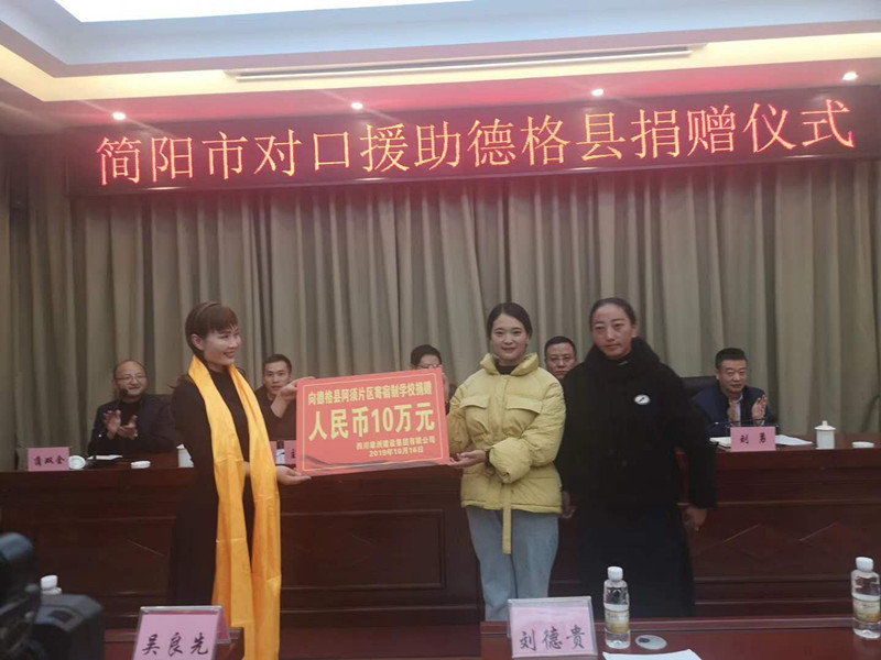 簡陽市對口援助德格縣捐贈人民幣10萬元